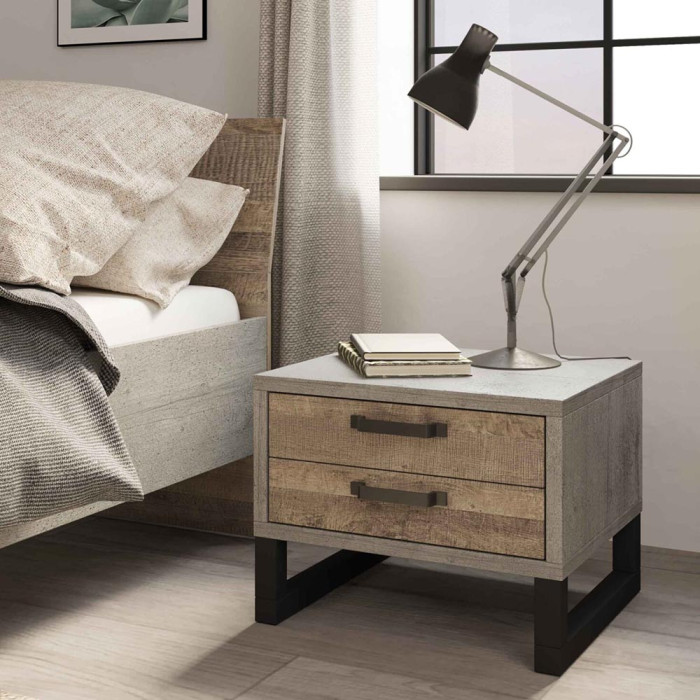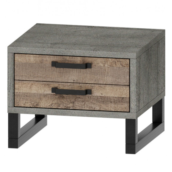 Прикроватная тумба СОКМЕ Бари — компактный и функциональный элемент спальни, выполненный в выразительном стиле лофт. Дизайн сочетает в себе фактурный светло-серый декор «Вудкон», имитирующий бетон, и теплый оттенок древесины «Дуб гранж песочный», благодаря чему изделие органично вписывается как в современные интерьеры, так и в интерьеры с характером и индивидуальностью.