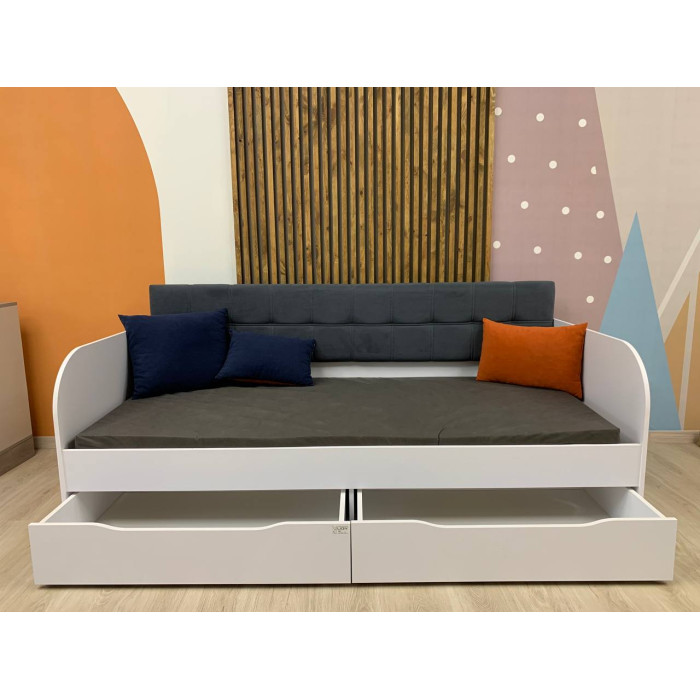 Детская односпальная кровать LION Л-7 с ящиками 80x190 см Кровать Л-7 это стильная и функциональная детская кровать, идеально подходящая для создания комфортной и уютной атмосферы в детской комнате. Модель изготовлена из высококачественных, экологически чистых материалов, что гарантирует долговечность, безопасность и устойчивость к износу. Основой кровати являются ламели, которые обеспечивают отличную вентиляцию матраса и дополнительную ортопедическую поддержку для комфортного сна.Практичные выдвижные ящики добавляют функциональности, предоставляя дополнительное место для хранения вещей. Видеообзор: Кровать LION Л-7 Материал изготовления Кровать изготовлена из ЛДСП SWISS KRONO – высококачественного материала, сочетающего эстетику с прочностью и надежностью. ЛДСП от SWISS KRONO известен своей стойкостью к механическим повреждениям, влаге и высоким температурам, что гарантирует долговечность мебели и сохраняет ее эстетичный вид на долгие годы. Ортопедические ламели Кровать комплектуется ламелями, обеспечивающими оптимальную поддержку матраса и правильное положение тела ребенка во время сна. Ламели способствуют вентиляции матраса, что повышает комфорт и обеспечивает здоровый отдых. Особенности: Выдвижные ящики. Кровать оснащена ящиками с телескопическими направляющими, позволяющими хранить книги, игрушки или постельное белье прямо под кроватью, сохраняя пространство в детской комнате. Мягкая спинка.Мягкая спинка кровати обеспечивает комфорт во время сидения, что позволяет ребенку удобно читать, смотреть телевизор или играть. Кромка 2 мм - защищает края изделий от повреждений, придает им эстетически завершенный вид и повышает долговечность мебели. Кромка изготавливается из прочных материалов, что позволяет ей выдерживать интенсивное использование и сохранять привлекательный внешний вид на протяжении многих лет. Видео-инструкция сборки: Кровать LION Л-7 Размеры: Спальное место: 80x190 см Ширина кровати: 1932 мм. Глубина: 840 мм Высота: 900 мм