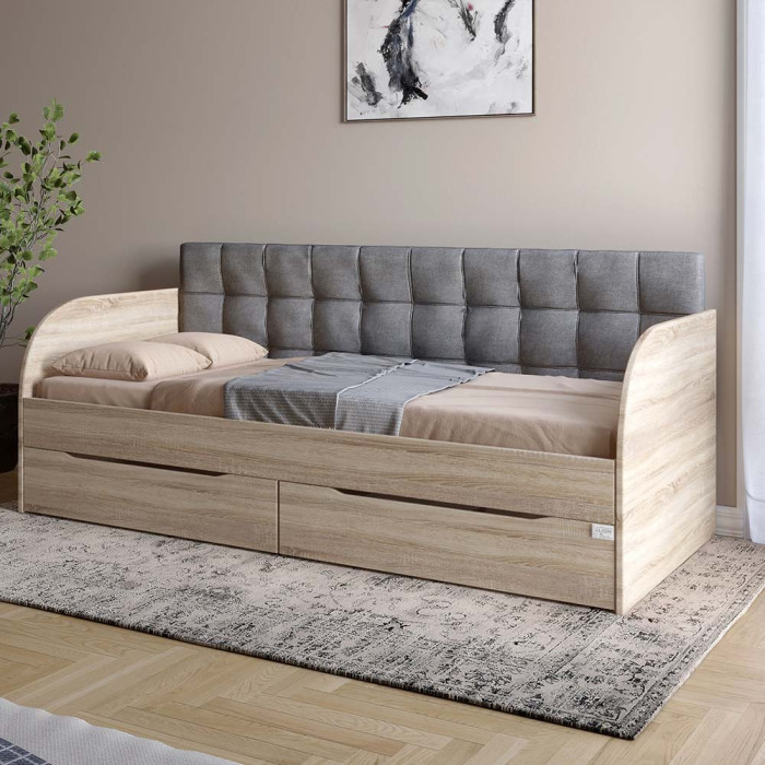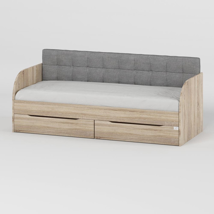 Детская полуторная кровать LION Л-7 с ящиками 80x190 см Кровать Л-7 это стильная и функциональная детская кровать, идеально подходящая для создания комфортной и уютной атмосферы в детской комнате. Модель изготовлена из высококачественных, экологически чистых материалов, что гарантирует долговечность, безопасность и устойчивость к износу. Основой кровати являются ламели, которые обеспечивают отличную вентиляцию матраса и дополнительную ортопедическую поддержку для комфортного сна.Практичные выдвижные ящики добавляют функциональности, предоставляя дополнительное место для хранения вещей. Видеообзор: Кровать LION Л-7 Материал изготовления Кровать изготовлена из ЛДСП SWISS KRONO – высококачественного материала, сочетающего эстетику с прочностью и надежностью. ЛДСП от SWISS KRONO известен своей стойкостью к механическим повреждениям, влаге и высоким температурам, что гарантирует долговечность мебели и сохраняет ее эстетичный вид на долгие годы. Ортопедические ламели Кровать комплектуется ламелями, обеспечивающими оптимальную поддержку матраса и правильное положение тела ребенка во время сна. Ламели способствуют вентиляции матраса, что повышает комфорт и обеспечивает здоровый отдых. Особенности: Выдвижные ящики. Кровать оснащена ящиками с телескопическими направляющими, позволяющими хранить книги, игрушки или постельное белье прямо под кроватью, сохраняя пространство в детской комнате. Мягкая спинка.Мягкая спинка кровати обеспечивает комфорт во время сидения, что позволяет ребенку удобно читать, смотреть телевизор или играть. Кромка 2 мм - защищает края изделий от повреждений, придает им эстетически завершенный вид и повышает долговечность мебели. Кромка изготавливается из прочных материалов, что позволяет ей выдерживать интенсивное использование и сохранять привлекательный внешний вид на протяжении многих лет. Видео-инструкция сборки: Кровать LION Л-7 Размеры: Спальное место: 80x190 см Ширина кровати: 1932 мм. Глубина: 840 мм Высота: 900 мм