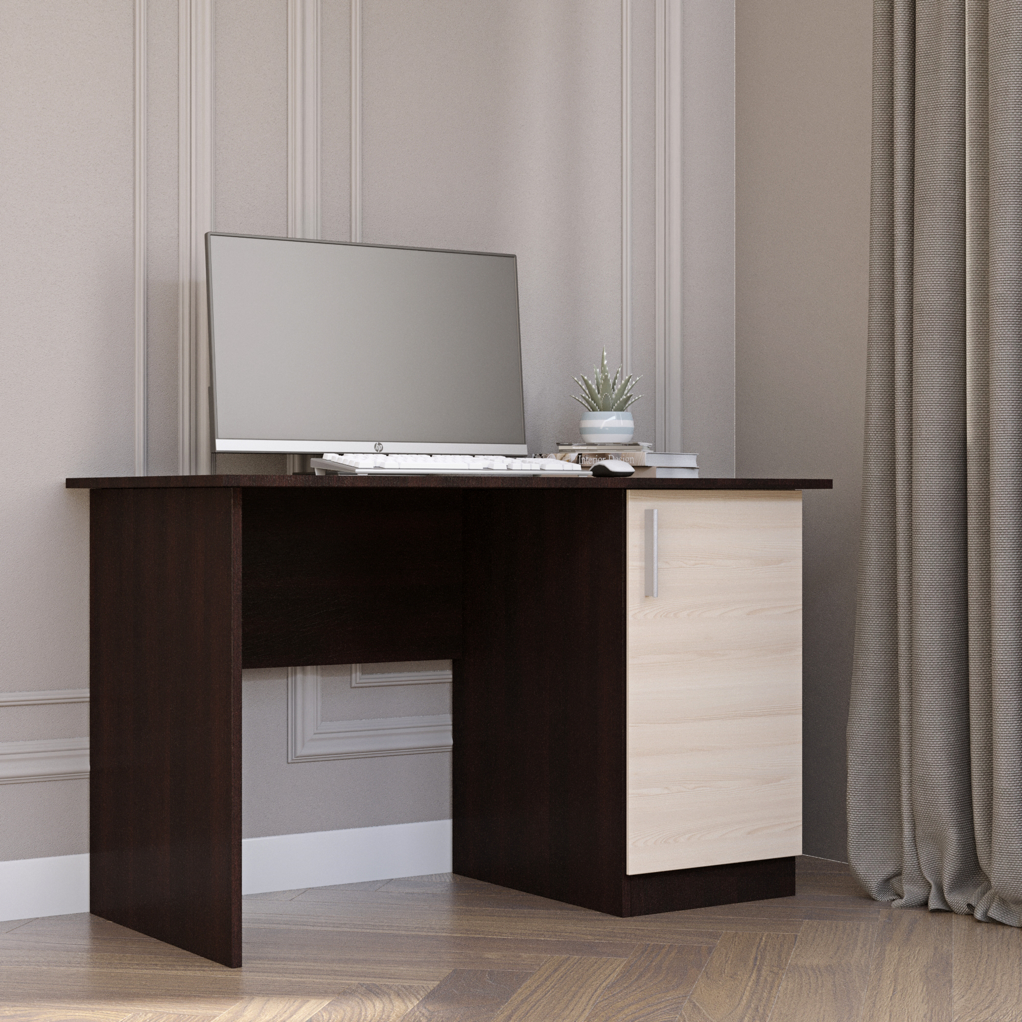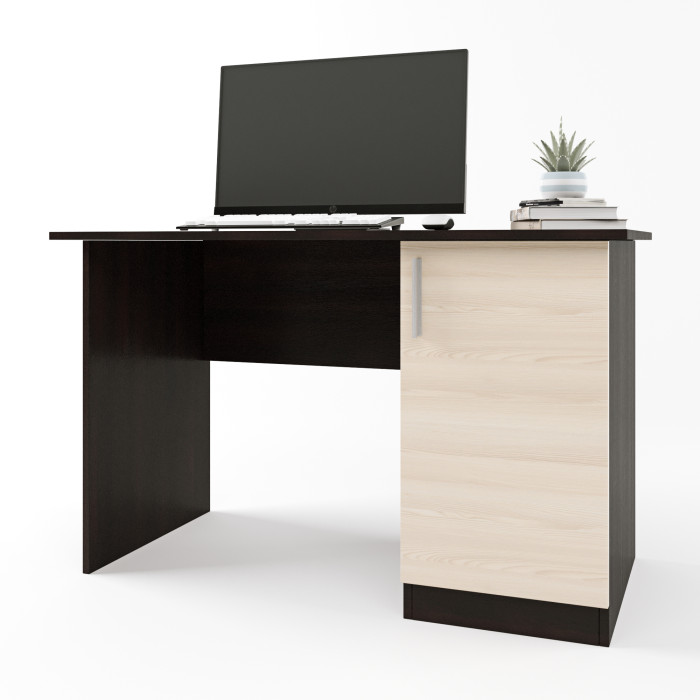 • Функциональная тумба. Стол оснащен встроенной тумбой с распашной дверцей. Такое наполнение позволяет удобно организовать хранение документов, учебных принадлежностей, канцелярии и личных вещей.