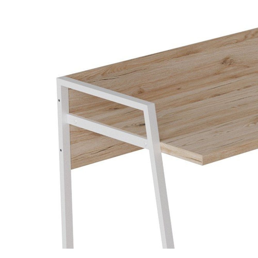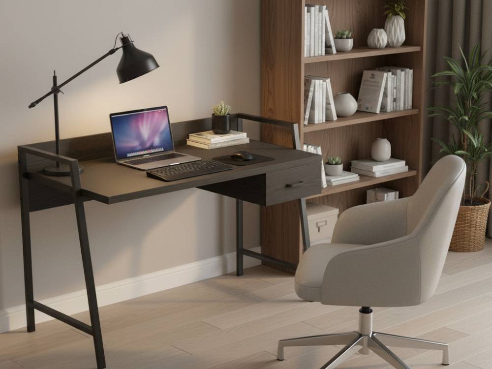 Каркас стола изготовлен из высококачественной металлической профильной трубы размером 60х20 мм. Металл покрыт специальной порошковой краской, которая обеспечивает надежную защиту от влаги, царапин и легких механических повреждений. Столешница выполнена из качественной ламинированной древесно-стружечной плиты (ЛДСП), имеющей значительную толщину — 32 мм, гарантируя прочную и долговечную рабочую поверхность. Встроенный ящик также изготовлен из ЛДСП и оснащен телескопическими направляющими, обеспечивающими плавное и бесшумное открывание и закрывание.
