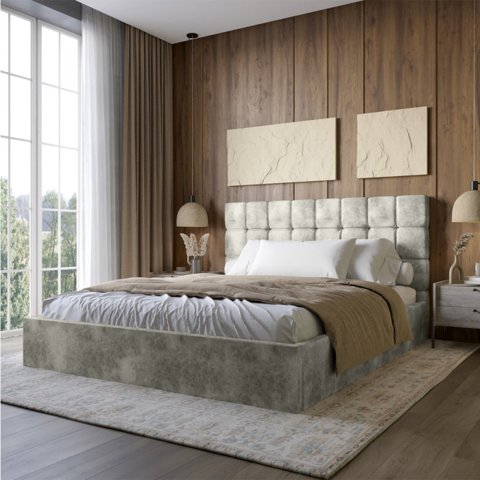 Двуспальная деревянная кровать LION Пикси со спальным местом 160х200 см Кровать Пикси от мебельной фабрики Lion - это стильное и удобное решение для спальни, которое гармонично впишется в любой интерьер. Благодаря использованию высококачественных материалов, она отличается прочностью и долговечностью. Основание из ламелей обеспечивает отличную вентиляцию матраса и дополнительную ортопедическую поддержку, создавая идеальные условия для комфортного сна. Кровать представлена в стандартном двуспальном размере, что обеспечивает достаточно места для отдыха, а ее надежная конструкция выдерживает значительные нагрузки. Материал изготовления Кровать изготовлена из ЛДСП SWISS KRONO - высококачественного материала, сочетающего эстетику с прочностью и надежностью. ЛДСП от SWISS KRONO известен своей устойчивостью к механическим повреждениям, влаге и высоким температурам, что гарантирует долговечность мебели и сохраняет ее эстетический вид на долгие годы. Ортопедические ламели Кровать комплектуется ортопедическими ламелями, обеспечивающими оптимальную поддержку матраса и правильное положение тела во время сна. Ламели способствуют вентиляции матраса, что повышает комфорт и обеспечивает здоровый отдых. Они равномерно распределяют нагрузку, продлевая срок службы матраса. Кроме того, ламели предотвращают накопление влаги, что способствует созданию благоприятного микроклимата для сна. Каркас кровати «Пикси» можно заказать в другой цветовой палитре Матеріал обивки - SILK: Мебельная ткань SILK - это изысканная коллекция велюрового обивочного материала, представленная в разнообразной палитре оттенков. Она сочетает в себе элегантный внешний вид и приятную на ощупь текстуру, что делает ее идеальным выбором для создания уютной и стильной атмосферы в интерьере. Ткань отличается высокой износостойкостью, что обеспечивает ее долговечность даже при интенсивном использовании. Благодаря универсальности оттенков, коллекция SILK легко впишется как в классический, так и в современный дизайн. Кроме этого, материал устойчив к выгоранию, что позволяет сохранить насыщенность цвета в течение длительного времени. Характеристики: Каркас: Ламинированное ДСП Спальное место: 160x200 см Высота изголовья (мм): 1050 Ширина (мм): 1720 Длина (мм): 2130 Цвет обивки: Silk 102 (Айвори) Основание под матрас: ортопедические ламели