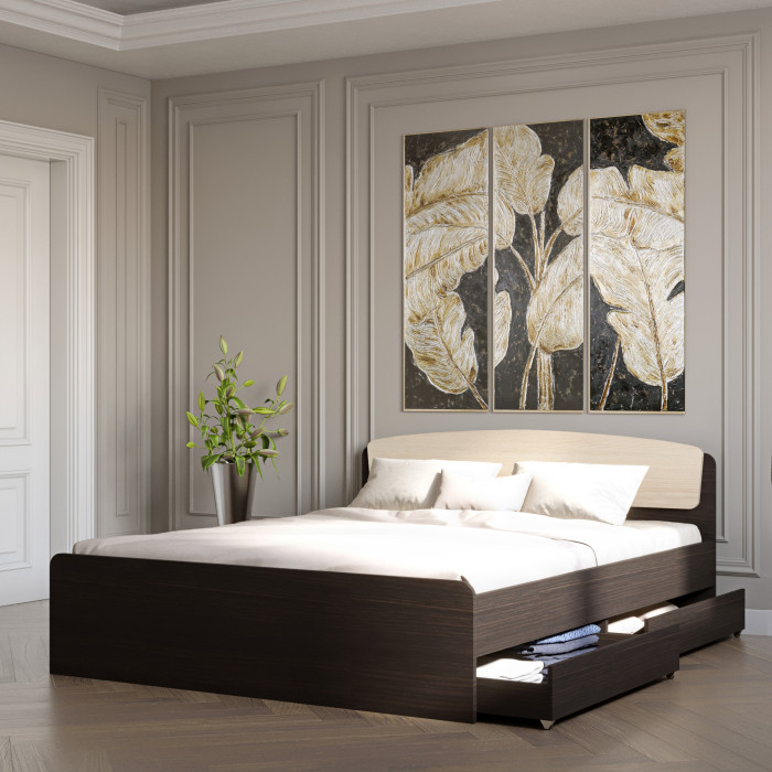 - Хранение. Модель оснащена выдвижными ящиками на роликах, которые удобно использовать для размещения постельного белья и других необходимых вещей.
