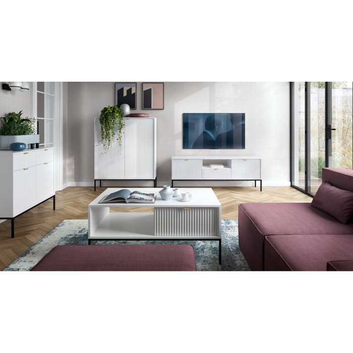 Корпус столика изготовлен из ламинированного ДСП толщиной 16 мм с защитной кромкой ABS, которая обеспечивает прочность и устойчивость к ежедневному использованию. Фасад выполнен из рифленой МДФ толщиной 18 мм, что создает глубину и объем. Опоры - из металлического профиля 18×18 мм - обеспечивают надежную поддержку и долговечность конструкции. Вся поверхность устойчива к царапинам, влаге и температурным колебаниям
