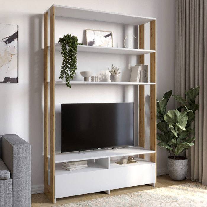 Модуль-4 стелаж з полицями та тумбою під ТВ LION Нобу Німфея Альба (білий)/Дуб Артизан (LION-042440)