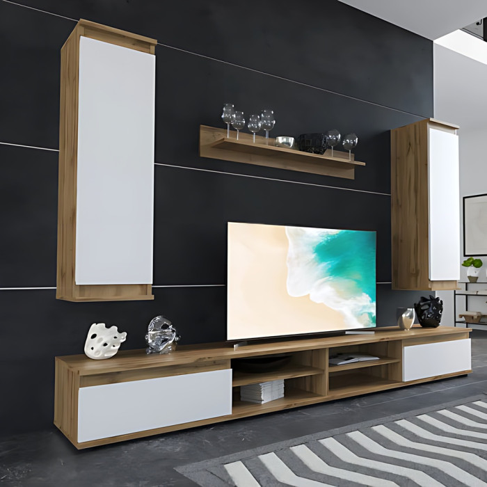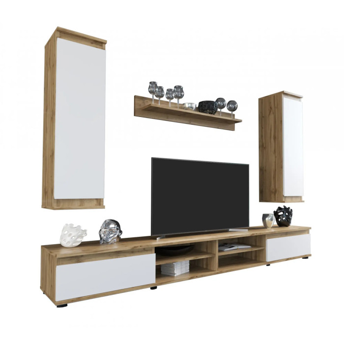 Эта модель выполнена в бодром светлом цвете дуба тахо в сочетании с нимфеей альба, что придаст вашей гостиной ощущение свежести и комфорта.
