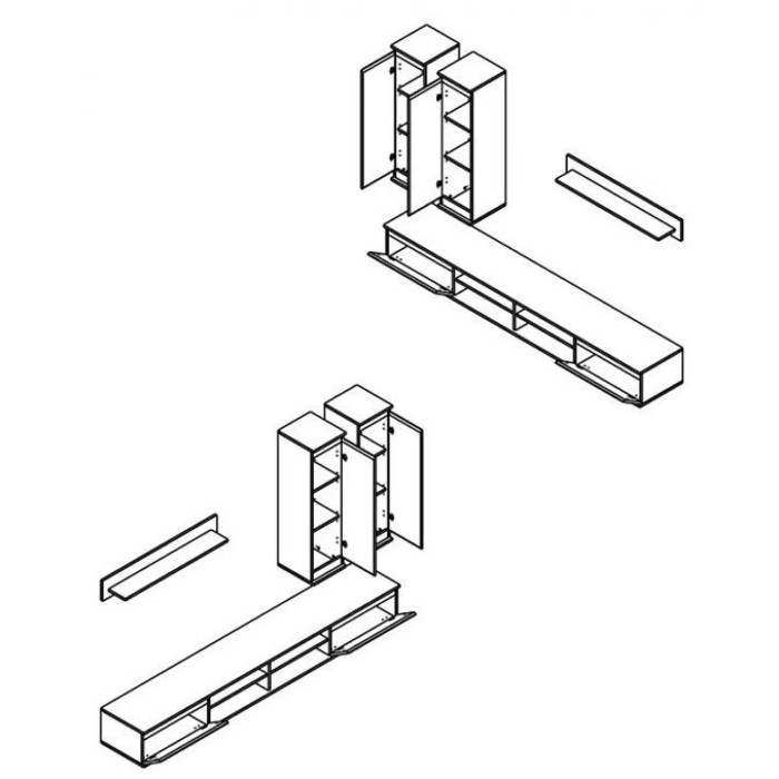 Все элементы удобно распределяют пространство, создавая максимум мест для хранения и декора. Эта модель выполнена в современном стиле, что позволяет сочетать ее практически с любым интерьером.