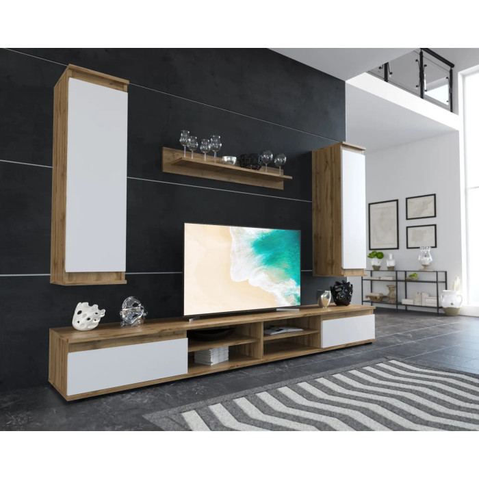 Модульная стенка для гостиной Гербор Люсия 220 Дуб тахо/Нимфея альба (белый) (GRB-1913)