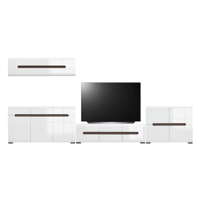 Модульная стенка для гостиной ВМК (БРВ) Амелия N77858 Белый + Белый глянец