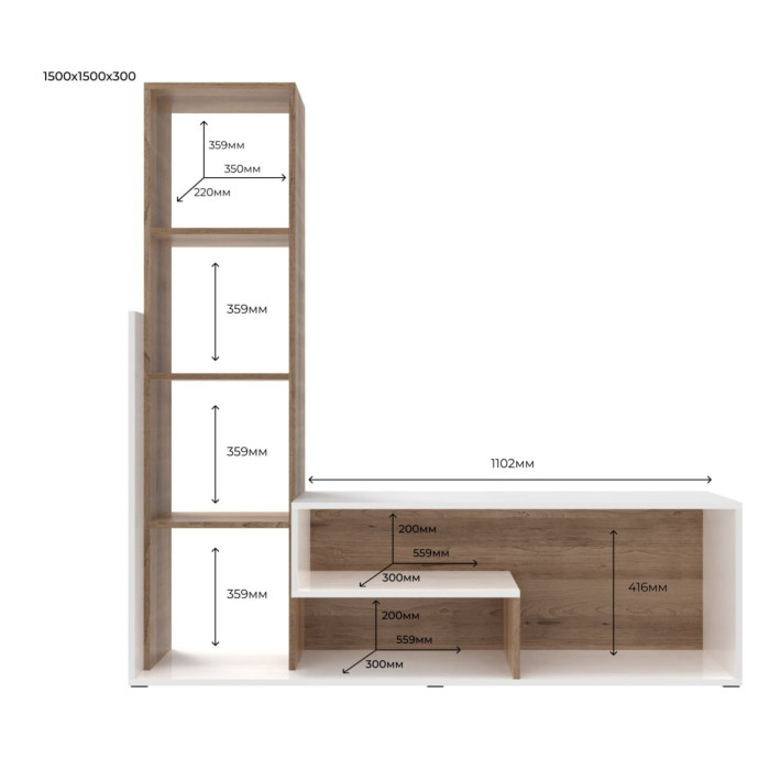 Стенка в гостиную Doros Этана 150х30х150 см Дуб артизан/Белый (DRS-011335)