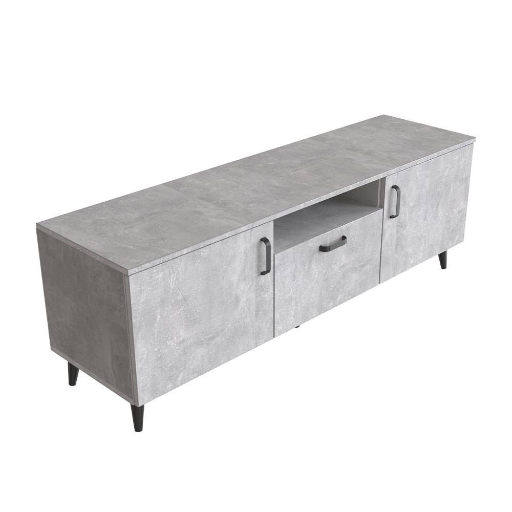 Тумба Лэстер на конусных ножках Ferrum-decor 48x139x38 Черный металл ДСП Бетон 16 мм (FRD-106801)