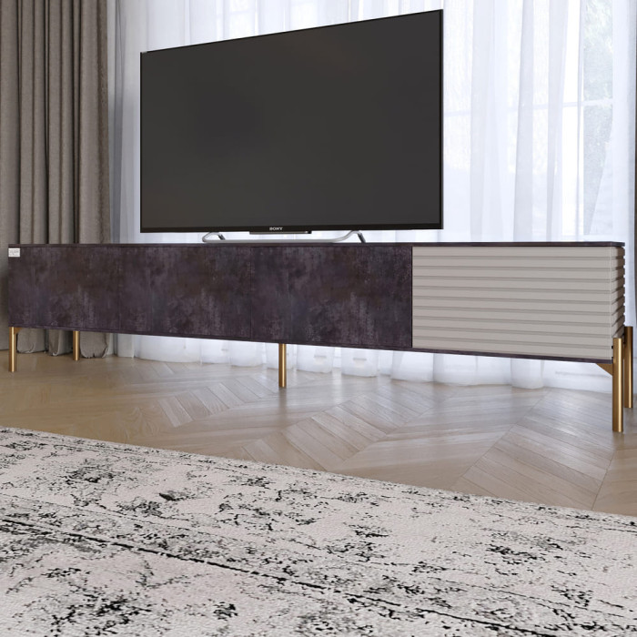 Тумба під телевізор на золотих металевих ніжках LION Грей Бетон темний/Кашемір (LION-042593)