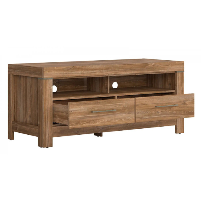 Тумба характеризуется комфортными размерами, идеально вписываясь в любой интерьер. Классический стиль, подчеркнутый оригинальным цветом дуба стерлинг, сделает акцент на ваших вкусах и подчеркнет индивидуальность вашего дома. Функционал тумбы значительно расширен благодаря наличию двух открытых полок и двух выдвижных ящиков на телескопических направляющих полного выдвижения. Это позволит комфортно разместить аудио- и видеотехнику, а также разнообразные аксессуары и принадлежности. Интегрированное освещение придаст атмосферности и уюта, а также обеспечит дополнительное освещение в вечернее время. Эта тумба действительно создает уникальное пространство для вашего отдыха и развлечений.
