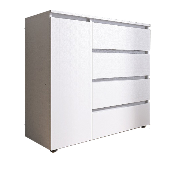 - Четыре вместительных ящика. Комод оснащён 4 просторными выдвижными ящиками, предназначенными для хранения одежды, белья, текстиля и других повседневных вещей. Глубина конструкции позволяет рационально использовать внутреннее пространство.