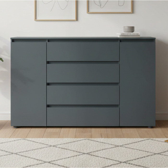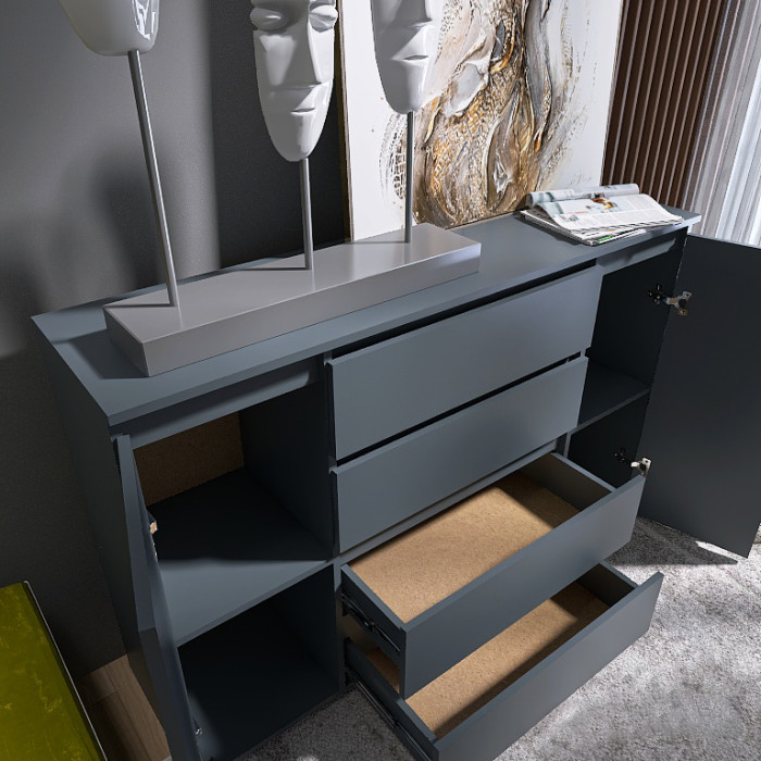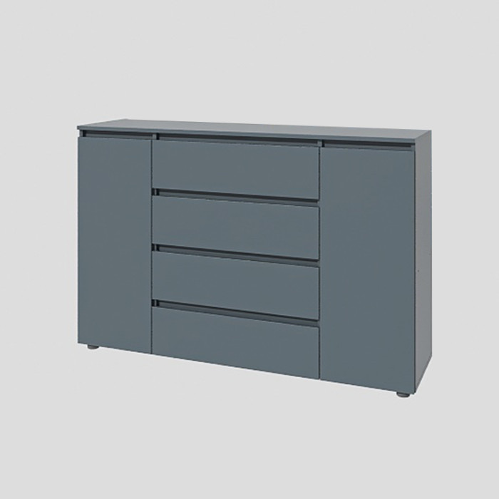 Корпус и фасады комода изготовлены из экологически чистого ламинированного ДСП швейцарского производства с классом эмиссии Е1, что гарантирует безопасность для жилых помещений, устойчивость к царапинам, влаге и ежедневному механическому воздействию. Ламинированное покрытие легко очищается, а обработка кромок повышает износостойкость и долговечность мебели.
