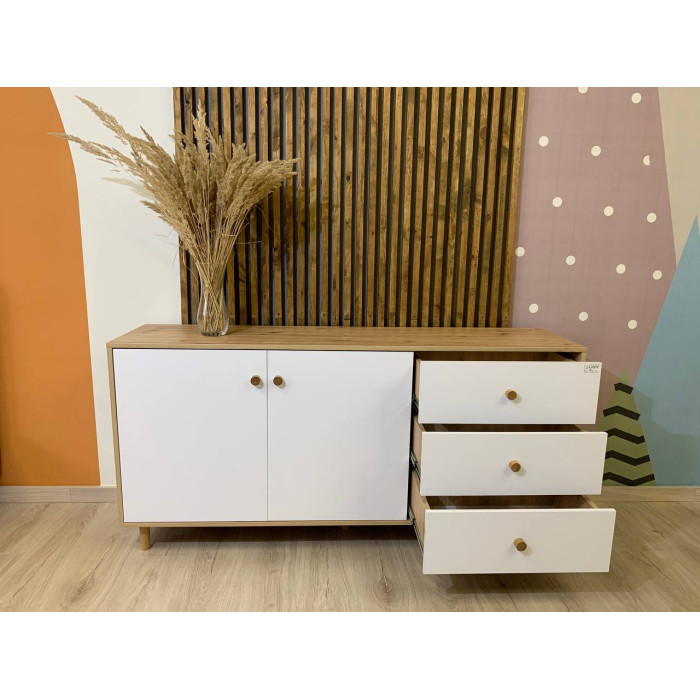 Комод изготовлен из ЛДСП SWISS KRONO – высококачественного материала, сочетающего эстетику с прочностью и надежностью. Его деревянные ножки придают конструкции натуральной красоты и крепости, подчеркивая элегантность и современный стиль изделия. ЛДСП от SWISS KRONO известен своей стойкостью к механическим повреждениям, влаге и высоким температурам, что гарантирует долговечность мебели и сохраняет ее эстетичный вид на долгие годы.