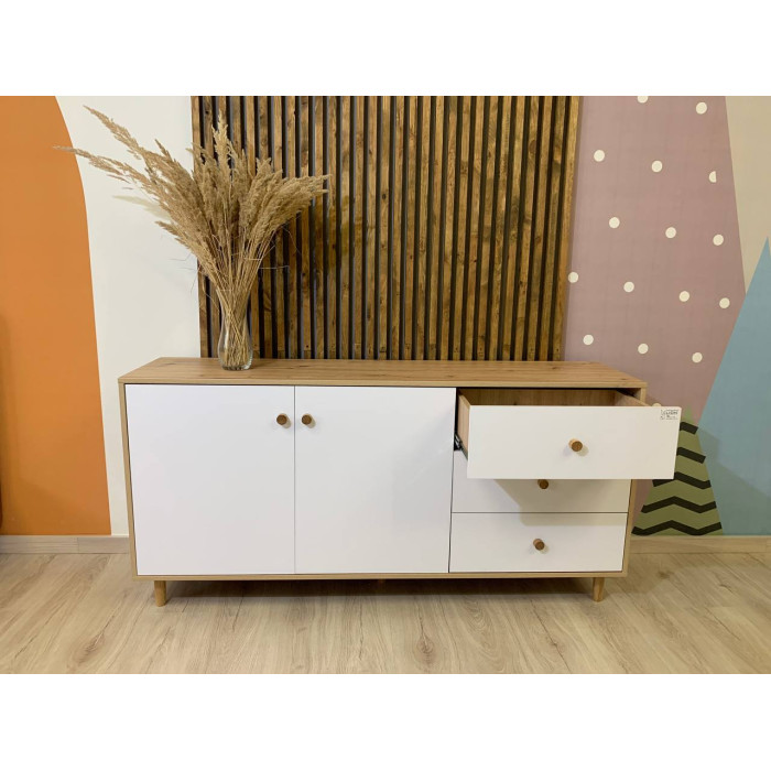 Комод изготовлен из ЛДСП SWISS KRONO – высококачественного материала, сочетающего эстетику с прочностью и надежностью. Его деревянные ножки придают конструкции натуральной красоты и крепости, подчеркивая элегантность и современный стиль изделия. ЛДСП от SWISS KRONO известен своей стойкостью к механическим повреждениям, влаге и высоким температурам, что гарантирует долговечность мебели и сохраняет ее эстетичный вид на долгие годы.