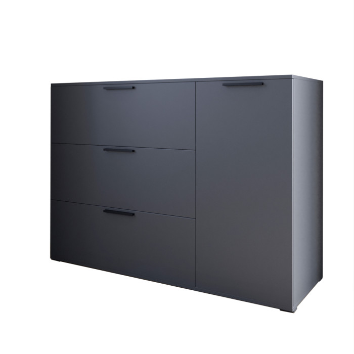 Комод LION Краш с тремя выдвижными ящиками и закрытыми полками Антрацит (LION-044141)
