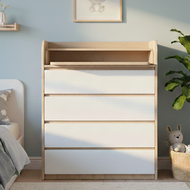 - Универсальный дизайн: сдержанный стиль комода позволяет гармонично сочетать его с другой мебелью детской комнаты.