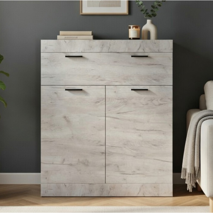 Комод с дверями и ящиком Эверест Соната-4 80х38х94 дуб крафт белый (EVR-2699)