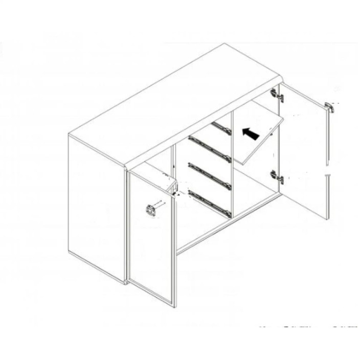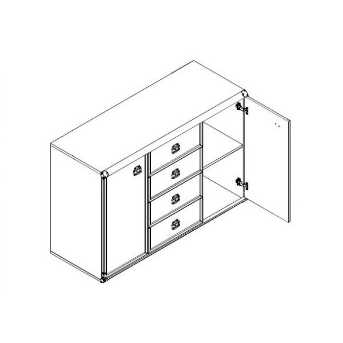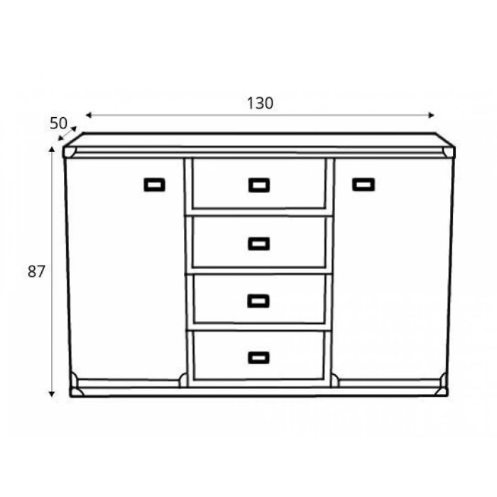 Комод выполнен в формате 130х49х87 см. Подобные размеры позволяют вместить вместе с четырьмя просторными выдвижными ящиками также две вместительные двери. Такое количество хранилищ позволяет легко и комфортно разместить все необходимые вещи.