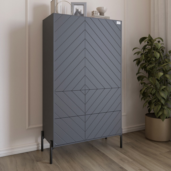 Комод-пенал с рельефной отделкой фасада и черными металлическими ножками LION Амарант 84x40x150 см Антрацит/Графитовый (LION-042080)