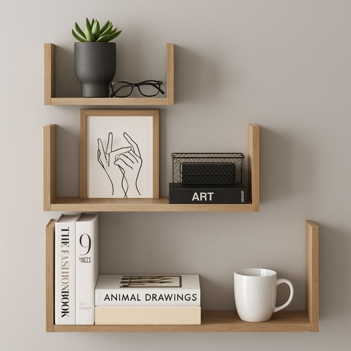 - Функциональность — идеально подходят для книг, декора или мелких аксессуаров.