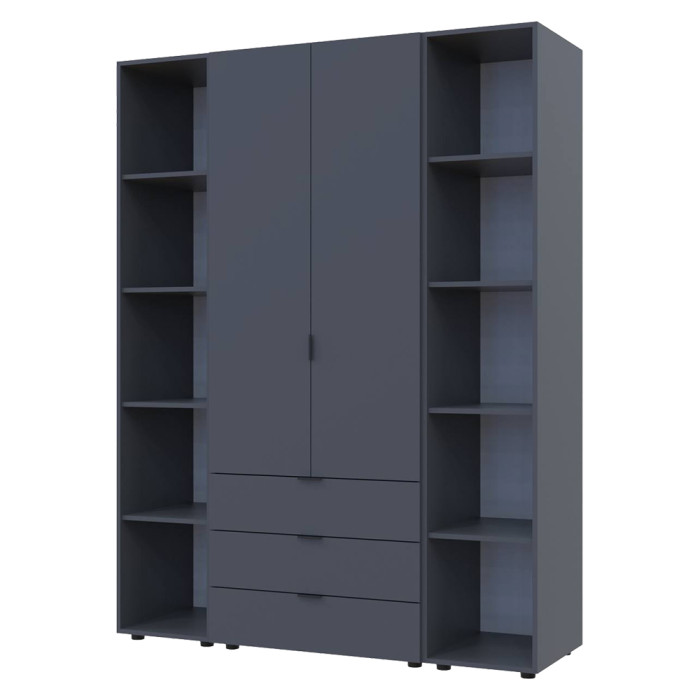 Комплект мебели для хранения одежды Doros Гелар сочетает в себе функциональность, вместительность и современный дизайн. В состав входит распашной двухдверный шкаф со штангой для вешалок и тремя удобными ящиками, который позволяет упорядочить верхнюю одежду, белье и аксессуары. Дополняют его два открытых пенала с полками, обеспечивающими дополнительное пространство для хранения сложенных вещей, книг или декоративных элементов. Открытая конструкция пеналов придает интерьеру легкость и создает ощущение пространства. Вместе эти элементы образуют гармоничный комплект, который станет практичным решением для спальни, гардеробной или прихожей.