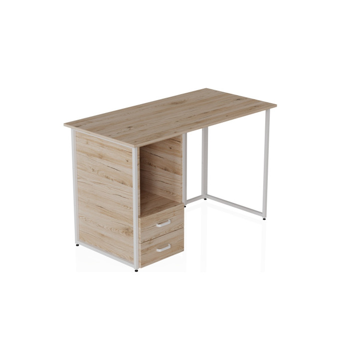 Каркас стола изготовлен из прочного металла с порошковым покрытием, что гарантирует стабильность и долговечность конструкции. Столешница выполнена из ламинированного ДСП, устойчивого к царапинам и легкому в уходе. Толщина столешницы может быть выполнена в двух вариантах — 16 или 32 мм, что позволяет выбрать оптимальный вариант под свои нужды. Ящики оснащены телескопическими направляющими для плавного и бесшумного использования.