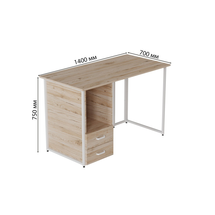 Каркас стола изготовлен из прочного металла с порошковым покрытием, что гарантирует стабильность и долговечность конструкции. Столешница выполнена из ламинированного ДСП, устойчивого к царапинам и легкому в уходе. Толщина столешницы может быть выполнена в двух вариантах — 16 или 32 мм, что позволяет выбрать оптимальный вариант под свои нужды. Ящики оснащены телескопическими направляющими для плавного и бесшумного использования.