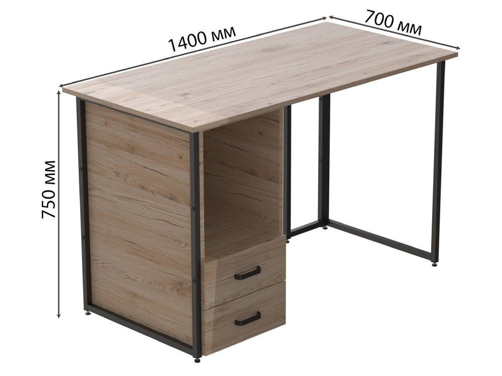 Каркас стола изготовлен из прочного металла с порошковым покрытием, что гарантирует стабильность и долговечность конструкции. Столешница выполнена из ламинированного ДСП, устойчивого к царапинам и легкому в уходе. Толщина столешницы может быть выполнена в двух вариантах — 16 или 32 мм, что позволяет выбрать оптимальный вариант под свои нужды. Ящики оснащены телескопическими направляющими для плавного и бесшумного использования.