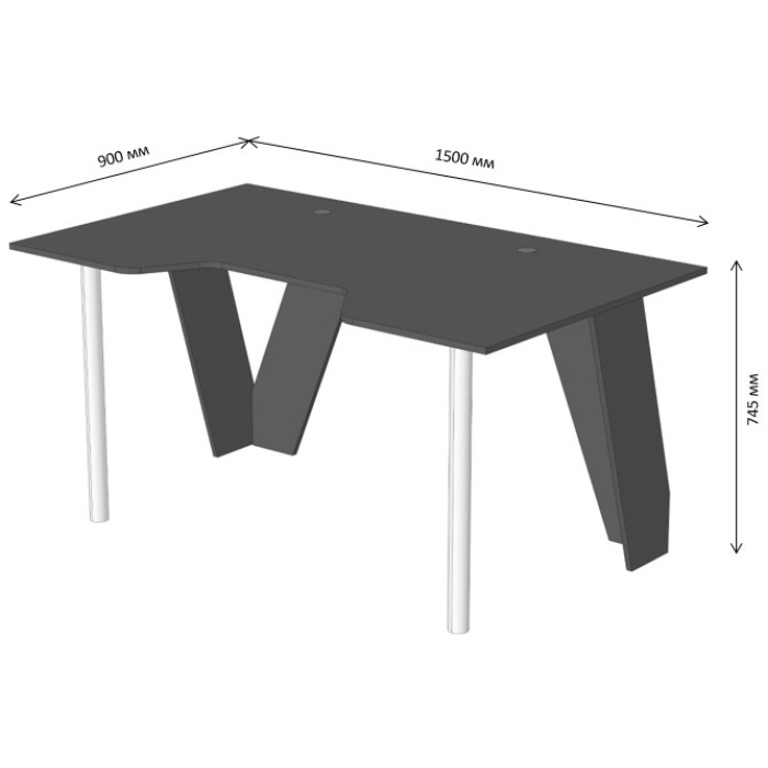 • Широкая рабочая поверхность (1500 мм) предоставляет достаточное место для размещения клавиатуры, мыши и других устройств, создавая комфортное рабочее место.