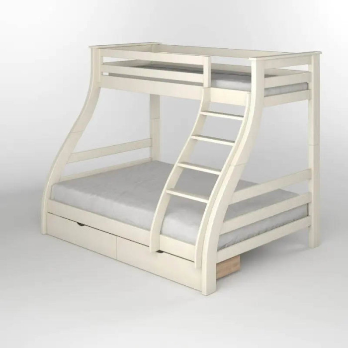 Двухъярусная детская кровать Mebigrand Аляска Айвори - идеальное решение для организации пространства в детской комнате. Монтаж верхнего ограждения с лесенкой является универсальным - левосторонний или правосторонний варианты обеспечивают комфорт и безопасность для вашего ребенка. Изготовлена из соснового деревянного массива, кровать обеспечивает надежность и долговечность использования. Основа кровати выполнена из ламелей, что обеспечивает правильную поддержку матраса и комфортный сон. Для покрытия использованы высококачественные краски и лаки, обеспечивающие безопасность и экологическую чистоту.