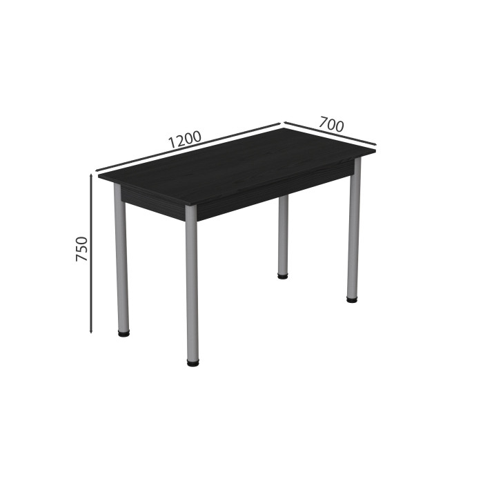 Ножки стола изготовлены из профильной металлической трубы диаметром 50 мм, покрытой крепкой порошковой краской, что обеспечивает защиту от влаги, коррозии и царапин. Столешница выполнена из ламинированного ДСП толщиной 16 мм, которое отличается износостойкостью и простотой в уходе. Конструкция стола разработана таким образом, чтобы гарантировать стабильность и длительный срок эксплуатации.