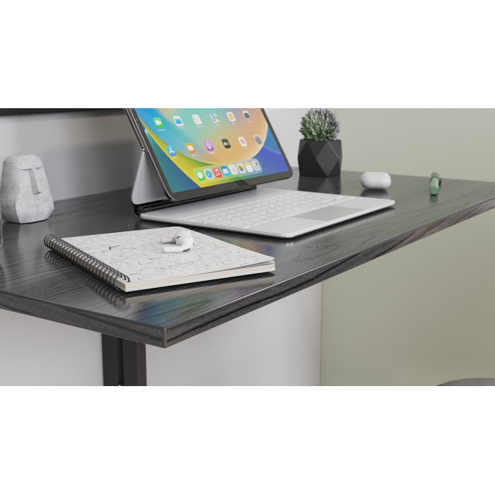 Конструкция стола создана из высококачественной металлической профильной трубы 20&20 мм и покрыта стойкой порошковой краской, которая надежно защищает металл от коррозии, влаги и механических повреждений. Столешница изготовлена ​​из прочной ламинированной ДСП толщиной 16 мм и дополнительно усилена кромкой ПВХ 2 мм, что обеспечивает высокую устойчивость к износу, ударам и ежедневному использованию.