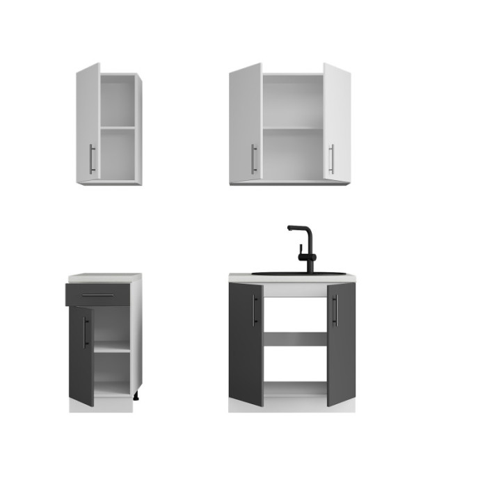 Кухня модульная Эверест Оптима набор №1 Нимфея альба (белый)/Антрацит 1,8 м — это компактный и стильный гарнитур, который идеально подходит для современных кухонь. Он сочетает в себе функциональность, минималистичный дизайн и качественные материалы. Модульная конструкция позволяет легко адаптировать гарнитур под разные потребности.