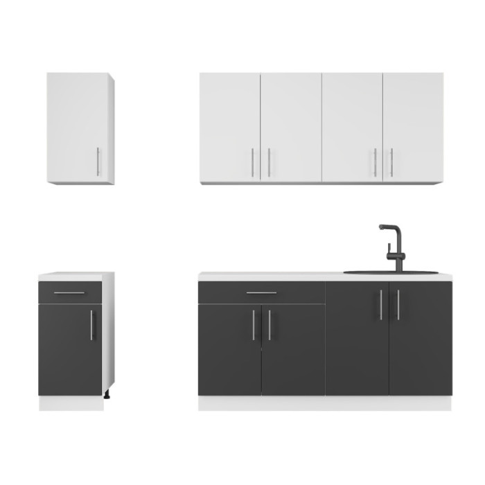 Кухня модульная Эверест Оптима набор №3 Нимфея альба (белый)/Антрацит 2,6 м — это компактный и стильный гарнитур, который идеально подходит для современных кухонь. Он сочетает в себе функциональность, минималистичный дизайн и качественные материалы. Модульная конструкция позволяет легко адаптировать гарнитур под разные потребности.