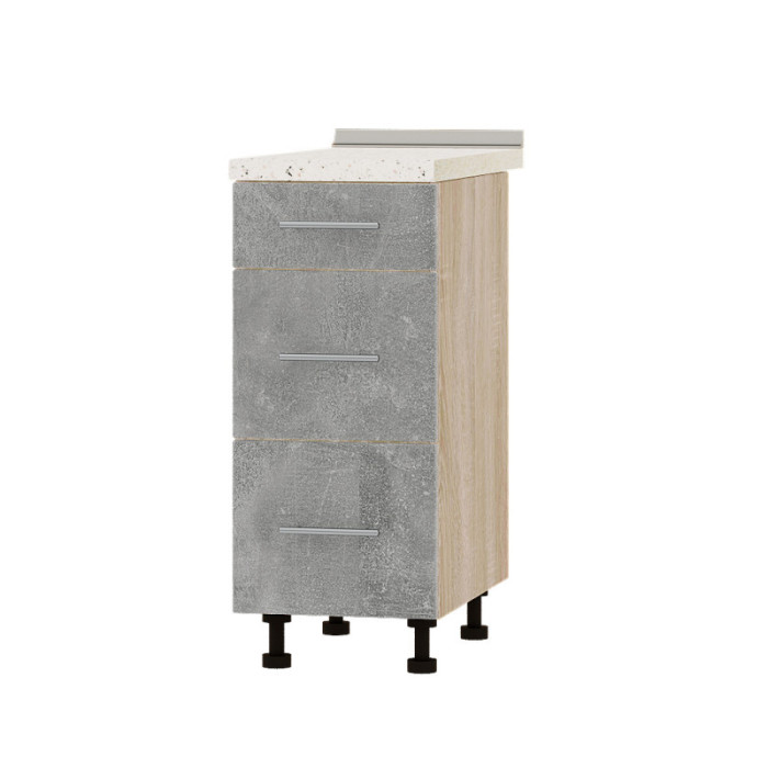 Кухонный модуль 3 ящика Оптима Низ Н87-350 Дуб Сонома/Бетон (без столешницы) 350х461х820 мм (EVR-072019)