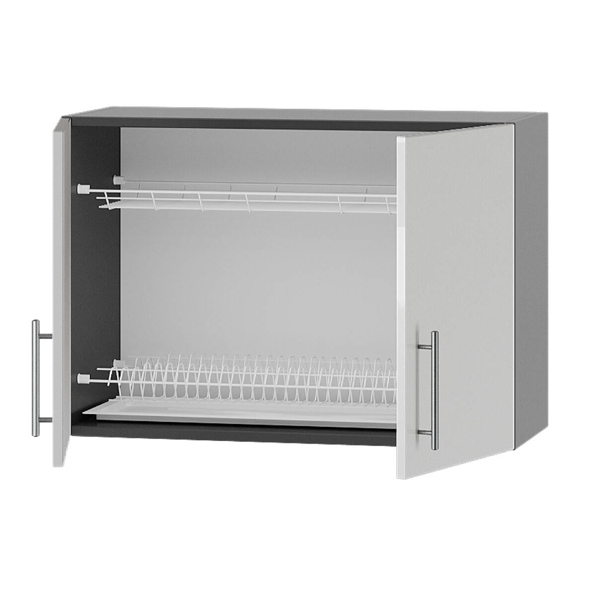Модуль оснащен сушилкой из нержавеющей стали с прутьями для удобного размещения посуды, а также дополнительными полками для хранения. Изготовленный из качественного ламинированного ДСП толщиной 16 мм с отделкой фасадов кромкой АБС (1 мм), модуль идеально дополняет нижние элементы кухни.