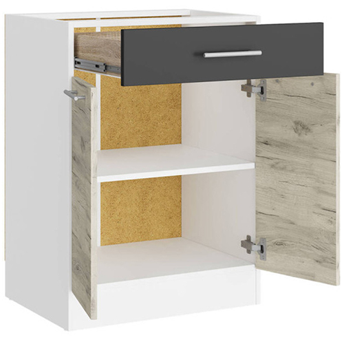 Кухонный модуль нижний с шухлядой Эверест Эко 600 дуб крафт белый/графит/белый (без столешницы) 60х46х82 см (EVR-071023)