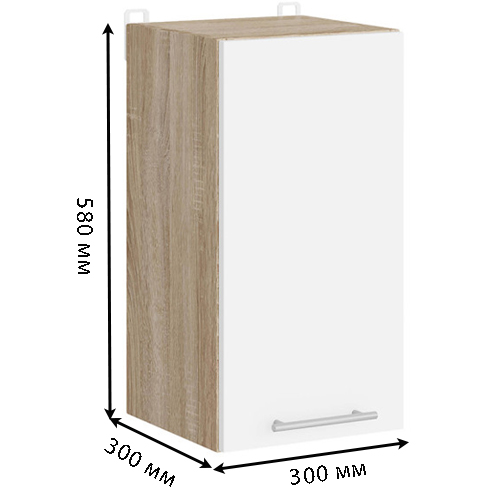 Кухонный модуль верхний Эверест Эко 300 дуб сонома/нимфея альба (белый) 30х30х58 см (EVR-071034)