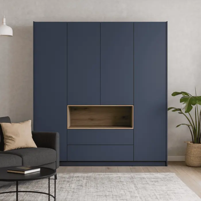 В нишах ставят системы разных конфигураций: трёхдверный шкаф подходит для компактных комнат, но требует такого же воздушного зазора, как и любой сплошной корпус. Если планируется большая зона под одежду, не превращайте её в «сушилку»: закрытый гардероб рядом с радиатором пересушивает вещи и может «крутить» плиты. Для модулей высотой около 2 м полезно оставить технологический просвет сверху или предусмотреть вентиляционные отверстия в задней стенке. В конструкциях с антресолями особенно контролируйте верхнюю секцию: под подоконником тёплый воздух часто задерживается, и перегрев проявляется быстрее.