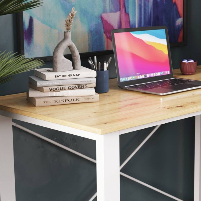 Письменный стол Ferrum-decor Драйв 750x1400x700 Белый металл ДСП Дуб Артизан 32 мм (FRD-103420)