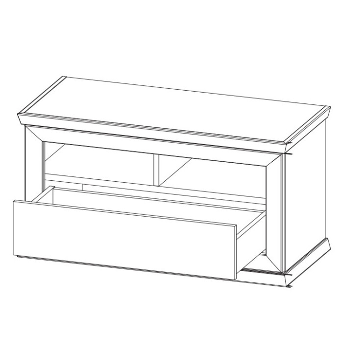 • Вместительность: просторное внутреннее отделение с выдвижным ящиком и двумя открытыми полками позволяет удобно хранить обувь, аксессуары или другие предметы, обеспечивая порядок в прихожей.