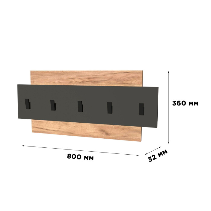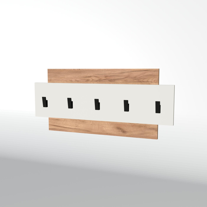 Основание вешалки выполнено из ламинированной древесно-стружечной плиты (ЛДСП), устойчивой к износу и повседневным нагрузкам. Торцы обработаны защитной кромкой, что увеличивает срок службы изделия. Крючки изготовлены из прочного пластика, рассчитанного на регулярное использование.