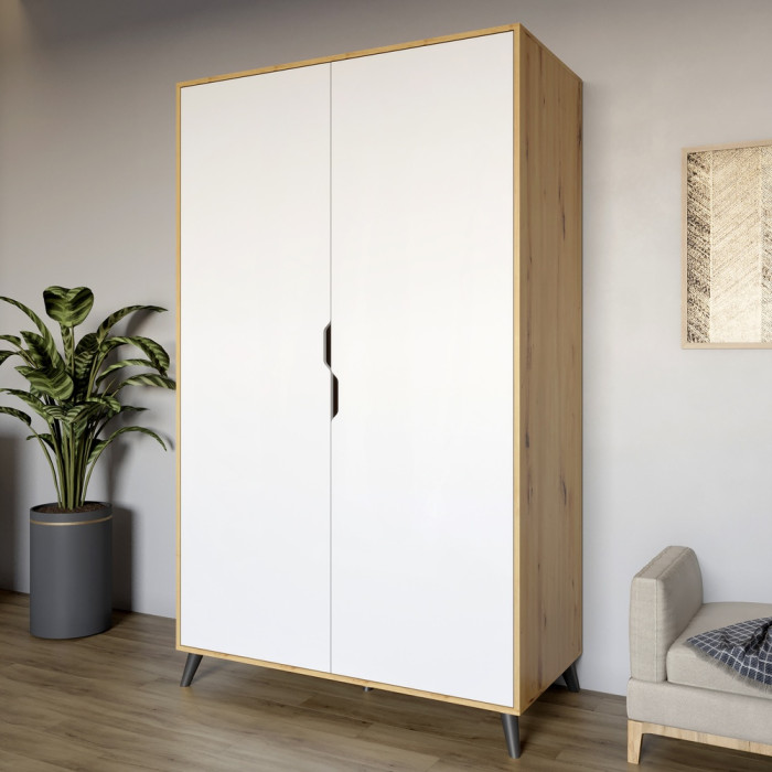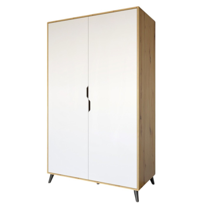 Шкаф двухдверный с черными ножками М-ЗОН Борн 1200 Дуб Артизан/Нимфея Альба (белый) (MZN-031062)