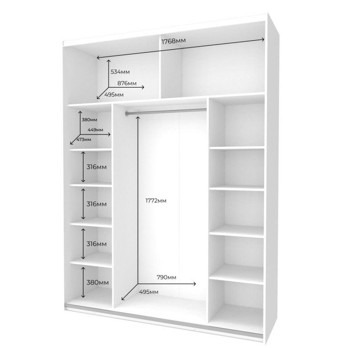 Шкаф-купе Doros G-Caiser — это стильное и функциональное решение для организации пространства в вашей спальне или гардеробной. Модель сочетает современный дизайн с максимальным удобством использования: две двери обеспечивают легкий доступ к внутреннему пространству, а продуманное наполнение позволяет удобно хранить одежду, аксессуары и личные вещи.