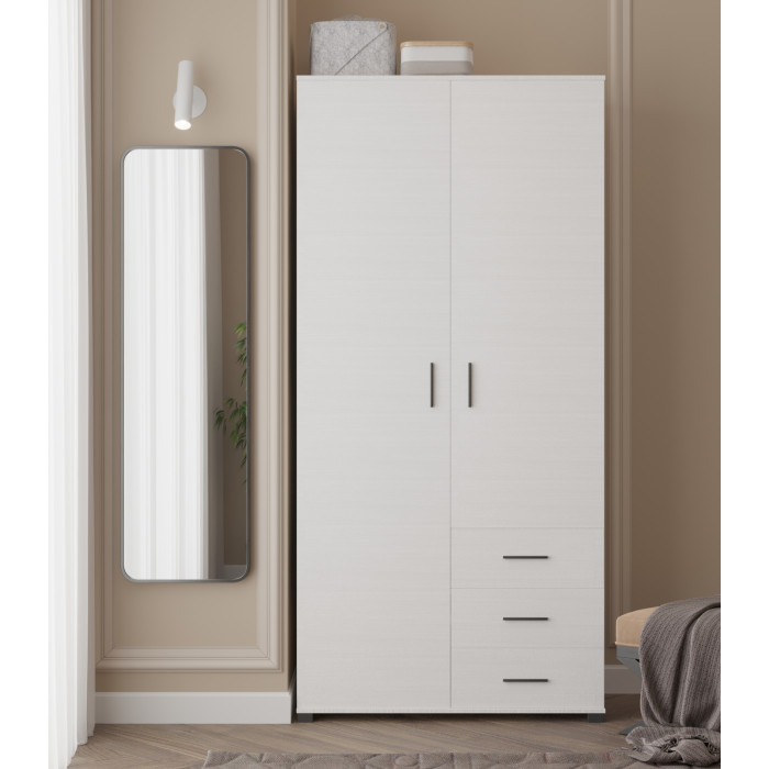 - Встроенная функция комода: Наличие трех выдвижных ящиков в нижней части шкафа позволяет удобно хранить белье, аксессуары или бытовые мелочи, избавляя от необходимости в дополнительной мебели.