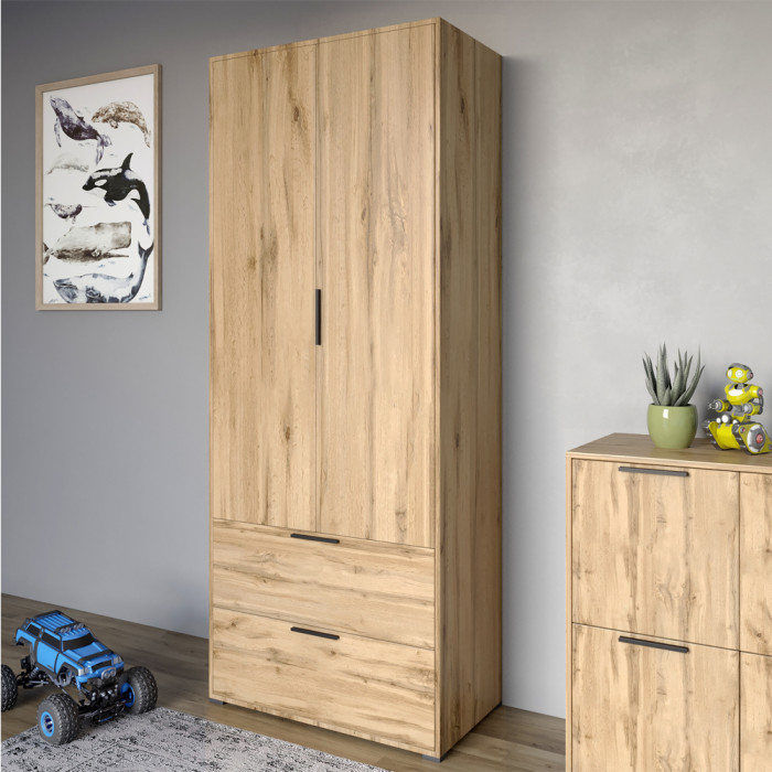 Шкаф распашной двухдверный LION Краш с 2 ящиками Дуб аппалачи (LION-044015)