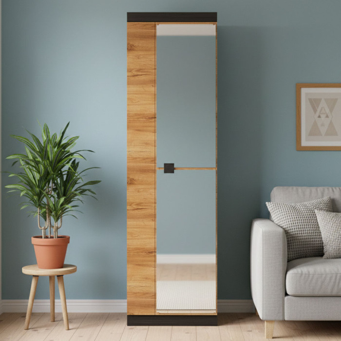 Шкаф распашной Соната-600 с зеркалом от мебельной фабрики «Эверест» из коллекции Соната — это компактная и практичная модель для современных интерьеров. Лаконичный дизайн и универсальная цветовая комбинация позволяют гармонично вписать шкаф в прихожую, спальню или гостиную. Благодаря зеркалу на фасаде модель не только выполняет функцию хранения, но и визуально расширяет пространство помещения.